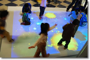 ◆タップトーク2 エントランスホールに常設 横浜こども科学館は,子どもたちが宇宙のふしぎや科学のおもしろさを楽しく学習できる施設です。 2007年3月、記念イベントの一環として、「タップトーク2」をレンタルさせていただきましたが、1ヶ月後、正式に購入される事となりました。これはタップトーク2の楽しく不思議なインタラクションが、多くの子どもたちを惹きつけたから?でしょうか・・・。これからもたくさんの子どもたちに体験してもらえる事になり、とても嬉しく思います。